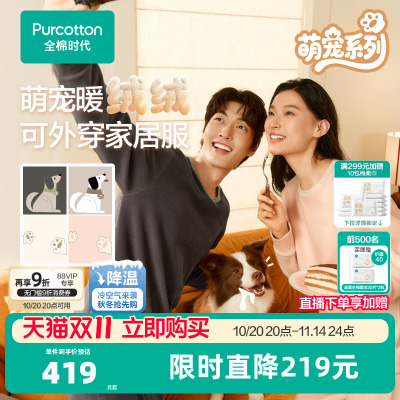 全棉时代男女士家居服套装萌宠绒绒睡衣可外出绒感居家冬装睡衣裤